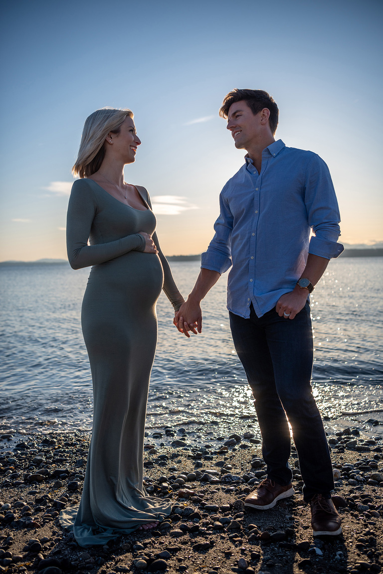 Pregnancy Portraits at Richmond Beach?! Yes please! What a sweet little semi-private beach with a small trail to get in, we had the beach totally to ourselves for this gorgeous Seattle sunset view.